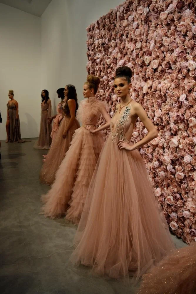 First of all, Michael is hilarious and you must follow his Insta rn (@michaelcostello). I loved him right away and we decided on two nail art looks - one for his dreamy and ethereal new bridal collection, and one for his exquisite evening and red carpet collection. Every gown was straight out of my dreams: girly, fluffy and all shades of blush pink and tones of white. Swoon!