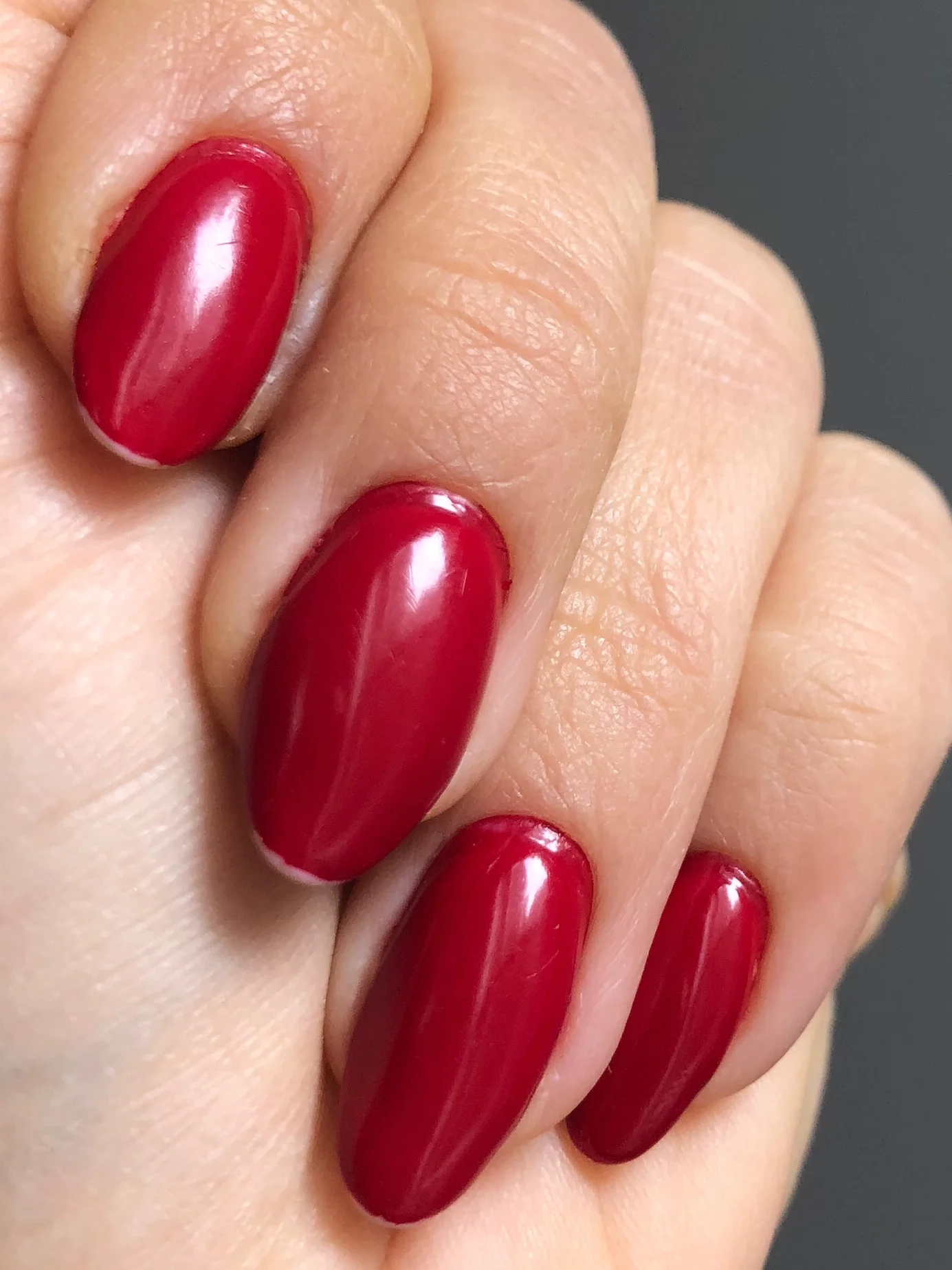 But here’s the thing - the nail is meant to be polished like that, because with that “careless” technique, the polish is able to get alllll the way into the folds of the nail, so that it lasts WAY longer as it grows out. The pic here is five days post mani- and there’s still NO visible growth. (Note: I am wearing gel underneath from my recent Russian manicure - hence the line of demarcation and wear on the tips).